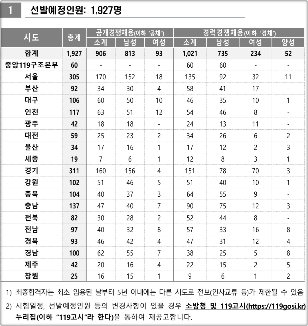🔻2025년 지역별 소방공무원 선발인원🔻