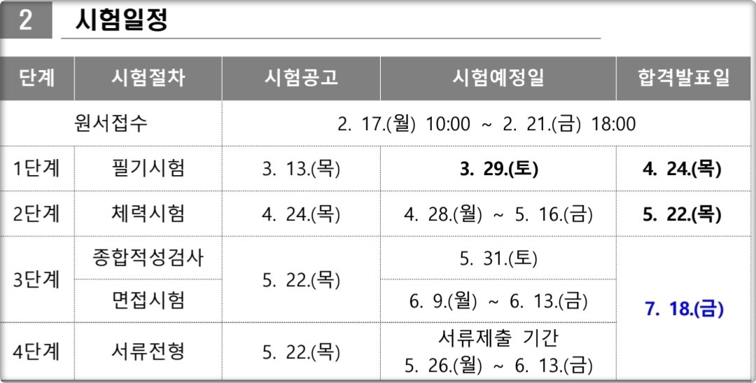 필기시험 합격자는 오는 4월 24일, 목요일 오후 2시에 발표될 예정입니다.