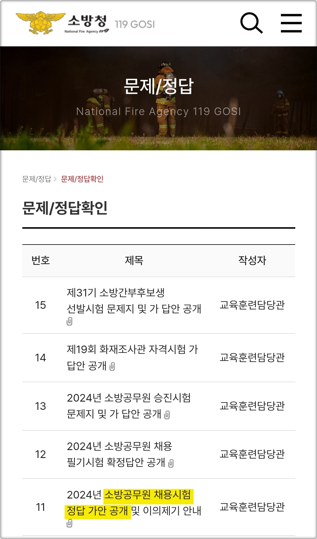 한 가지 유의하실 점은, 가답안은 소방청 홈페이지나 국가고시센터가 아닌 ‘119고시’ 누리집에서 확인하실 수 있다는 것입니다.