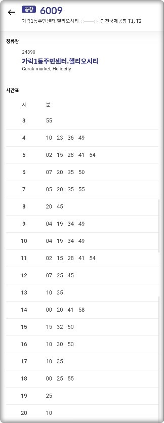 ( 6009 공항버스 '전체 정류장' 시간표 )