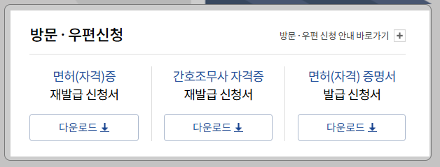 - 신청서 및 양식은 [보건복지부 면허민원 홈페이지 > 방문·우편 신청안내] 페이지에서 다운로드 가능해요.