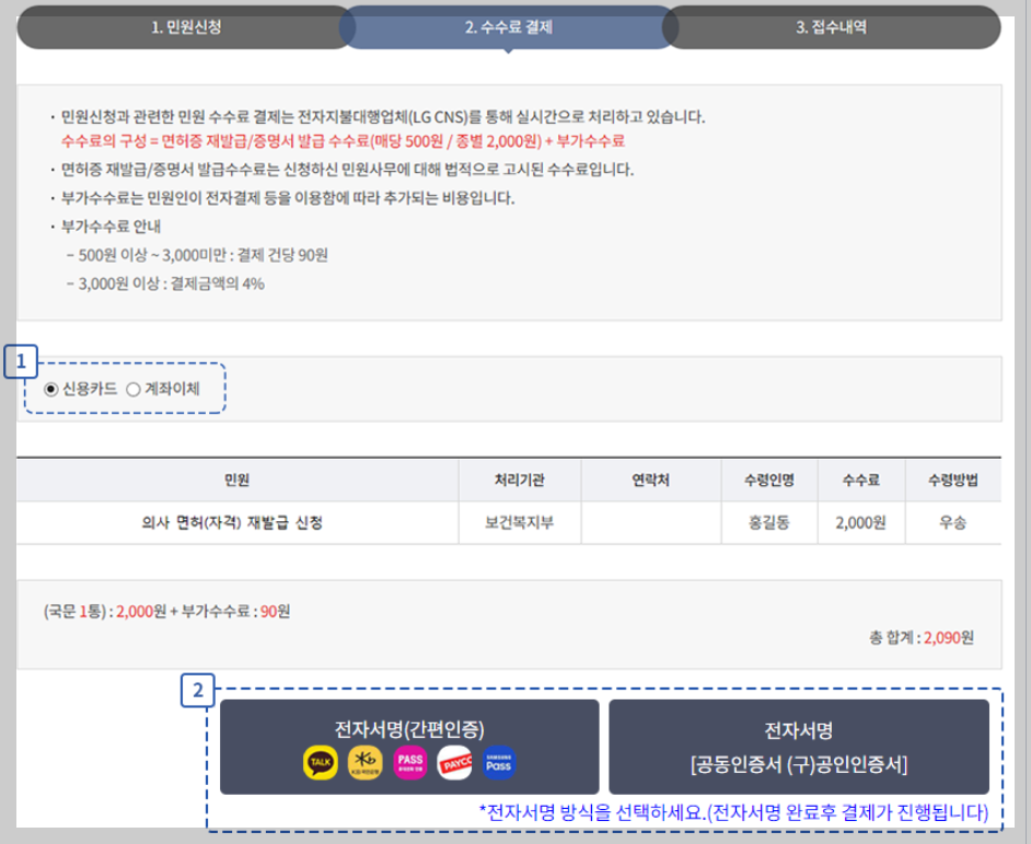 - 수수료: 정부수입인지 2,000원 (※ 정신건강전문요원은 제외)