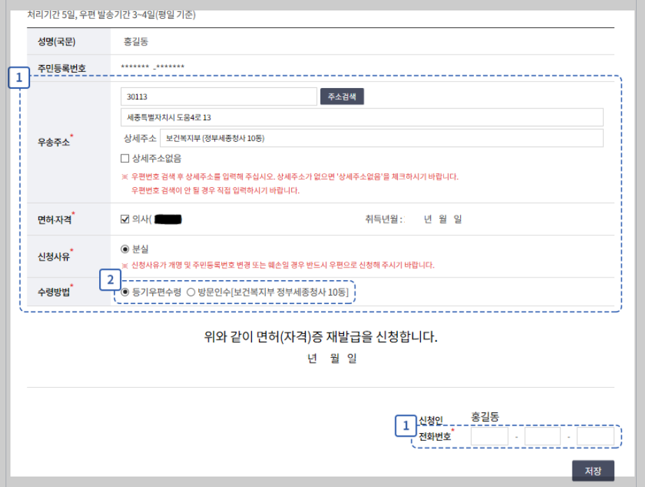 → 주소: 세종특별자치시 도움 4로 13, 보건복지부 운영지원과(면허)