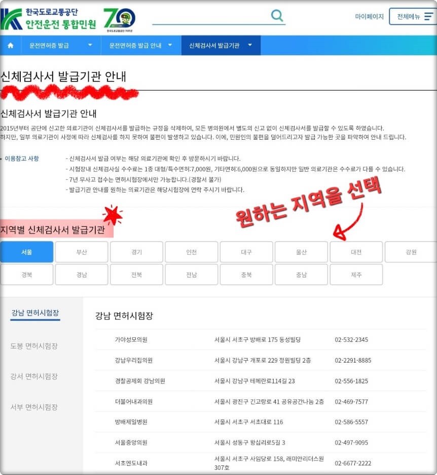 ("운전면허" 신체검사 지정병원 / 도로교통공단)