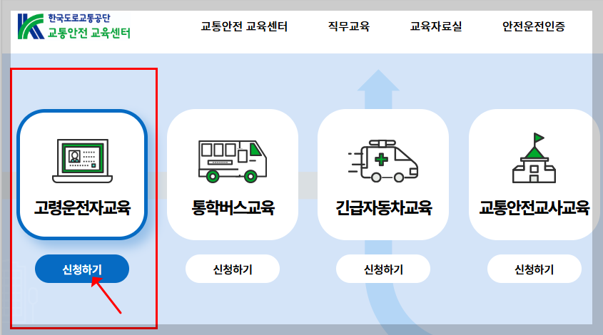 [‘도로교통공단 안전운전 통합민원’ 홈페이지]에 접속해 회원가입 후 본인 인증을 완료해 주세요. - 고령운전자 교육 신청