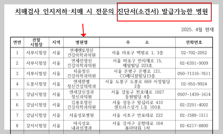 그런데 이 진단서는 모든 병원에서 발급해주는 것이 아니기 때문에 헛걸음을 줄이고, 갱신 지연을 방지하려면 진단서 발급 가능 병원을 미리 확인하는 것이 좋습니다.