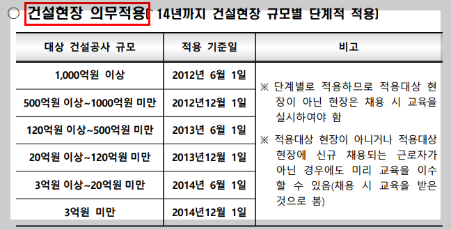 무엇보다 건설기초안전교육은 법적으로도 반드시 이수해야 하는 필수 교육입니다.