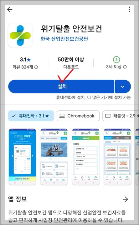 - 앱스토어 또는 플레이스토어에서 ‘위기탈출 안전보건’ 검색 후 설치