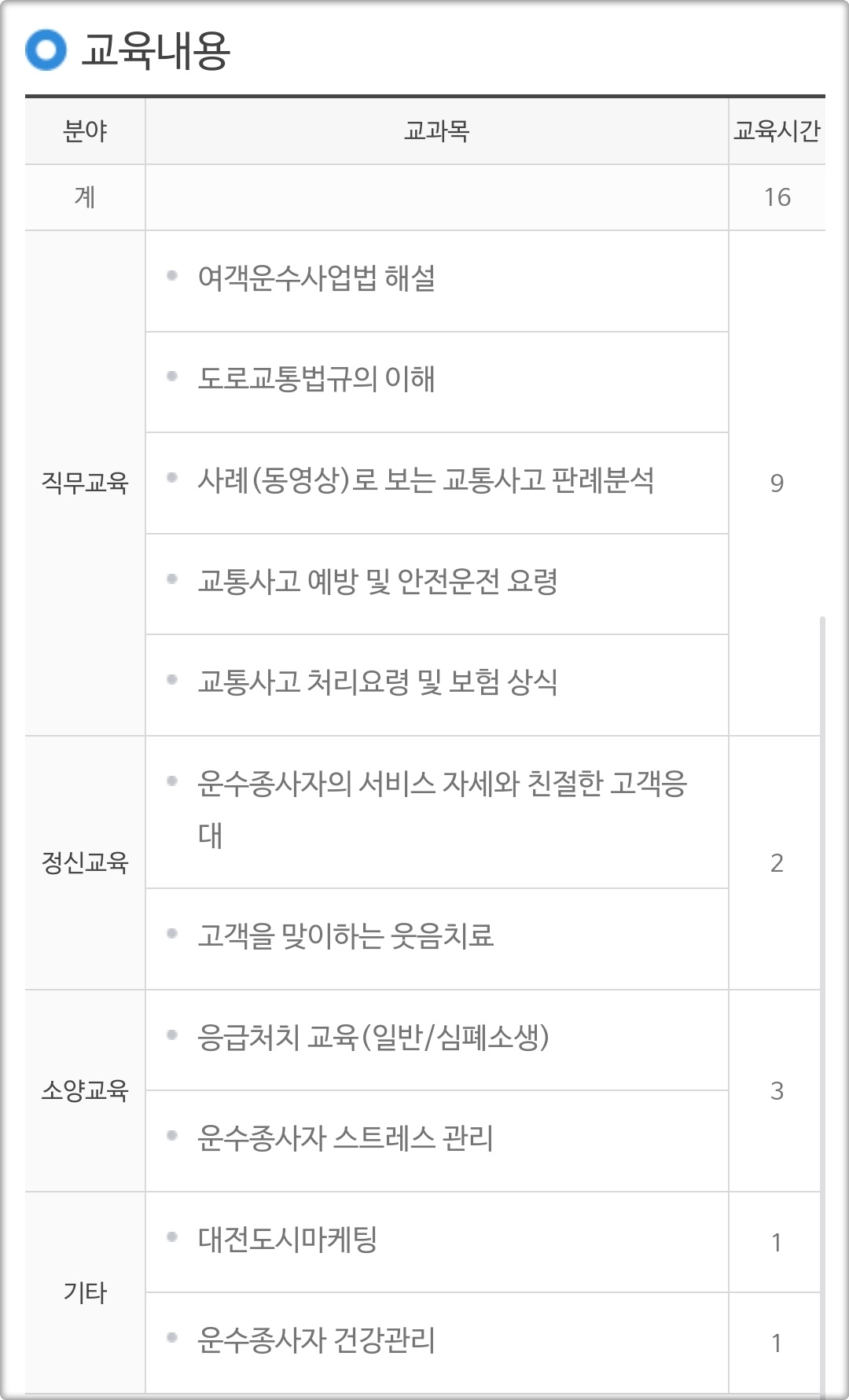 → 즉, 화물운전경력은 산정되지 않기 때문에 화물자동차 운전경력을 가진 분이라도 여객자동차 업종으로 재취업하려면 신규교육을 반드시 받아야 합니다.