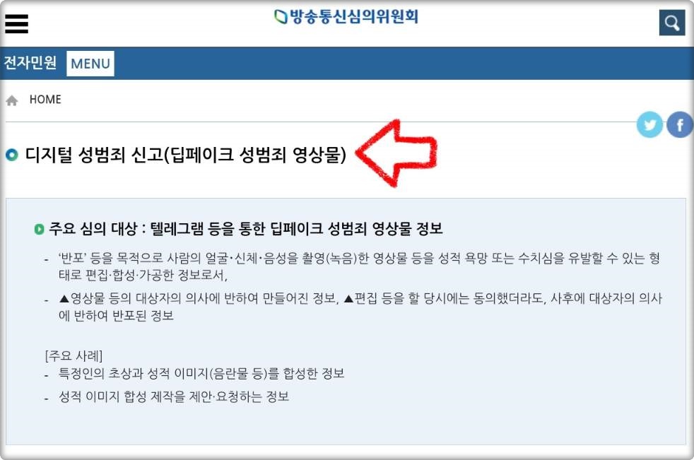 (방송통신심의위원회 '딥페이크' 신고 바로가기)