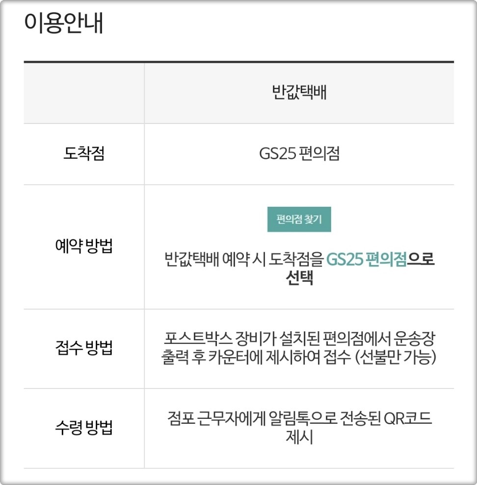 - 사전 예약 후에는 포스트박스 장비가 설치된 GS25 편의점을 방문해야 합니다.