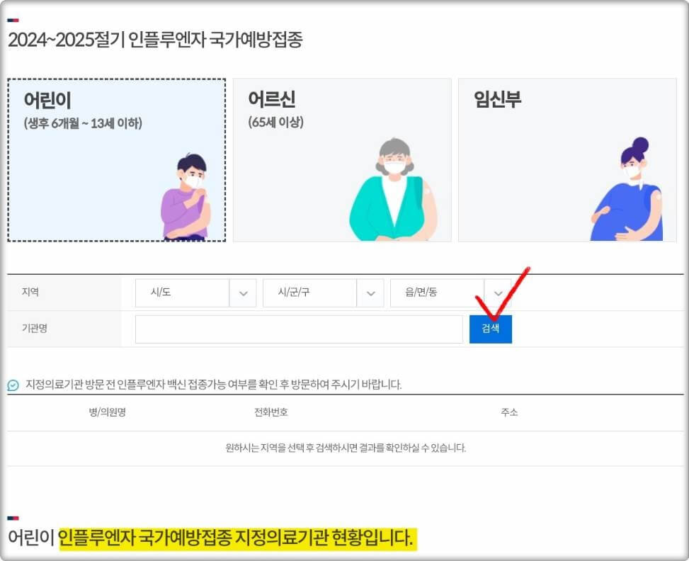 아래의 공식누리집에서 지역별 의료기관을 미리 확인하시고 가까운 지정병원에서 무료 예방접종 받으시기 바랍니다.