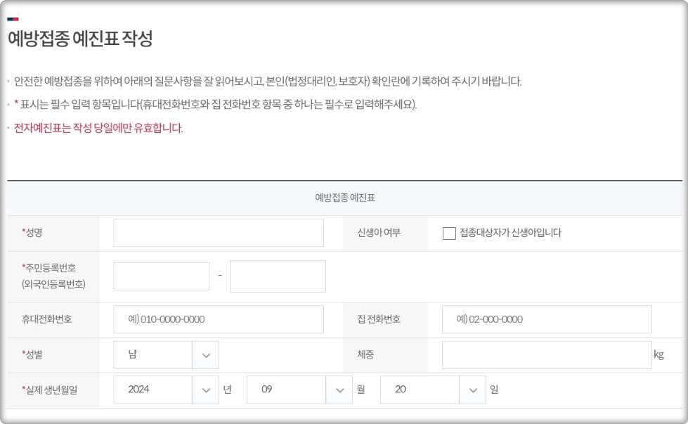 참고로 올해부터는 접종당일 "전자예진표"를 미리 작성할 수 있습니다.