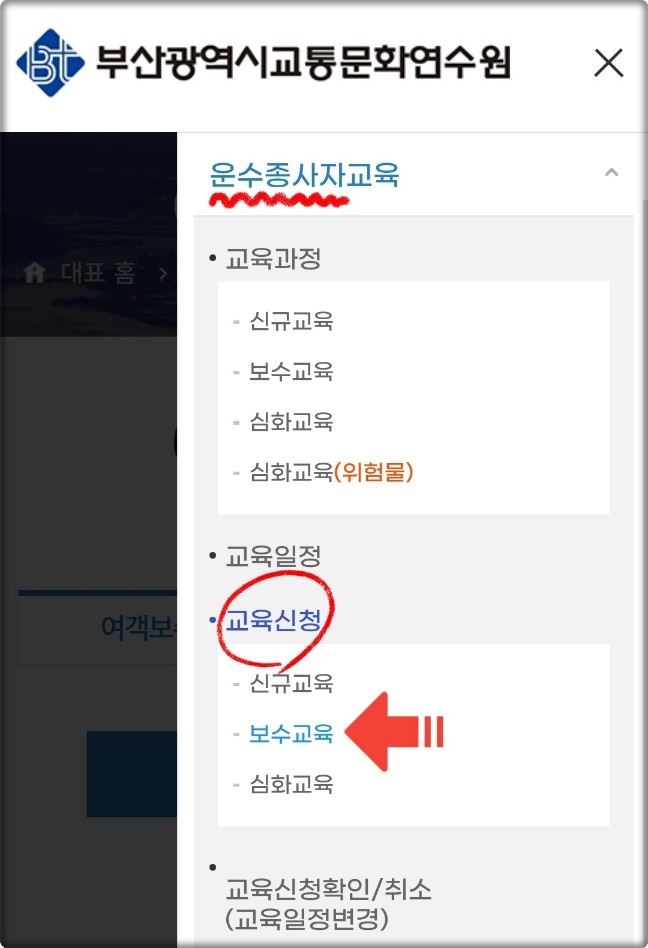 (부산 교통연수원 '교육신청' 페이지로 이동)