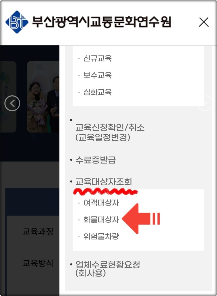2. 부산 화물보수교육 면제자 조회