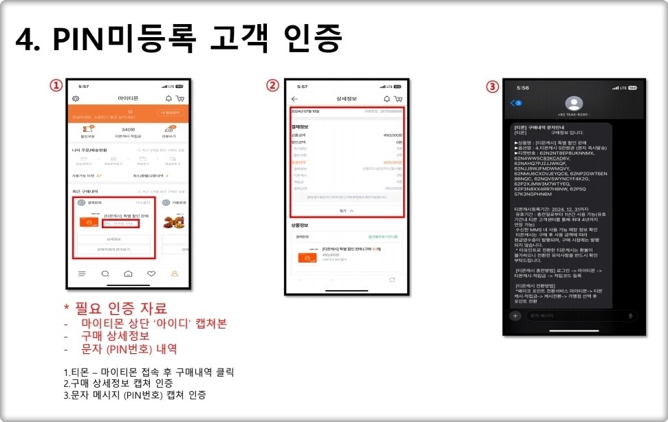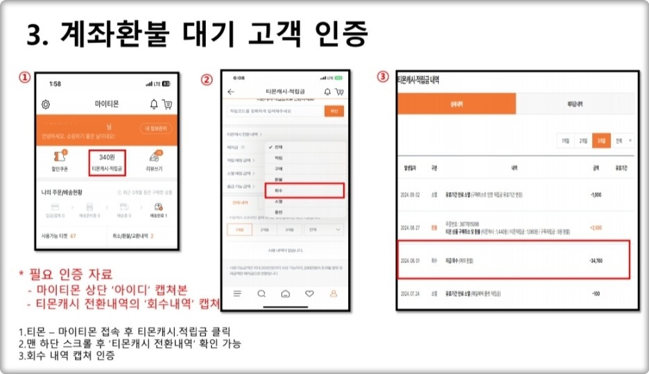 🔻 아래는 티몬캐시 추가 입증자료 제출이 필요한 경우입니다.
