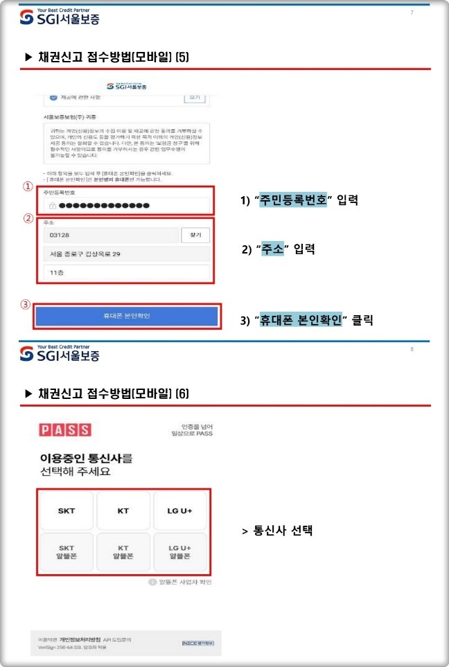 위의 모바일 채권신고 매뉴얼에는 단계별 이미지가 포함되어 있어 한눈에 이해하기 쉽고, 따라 하기 편리합니다.