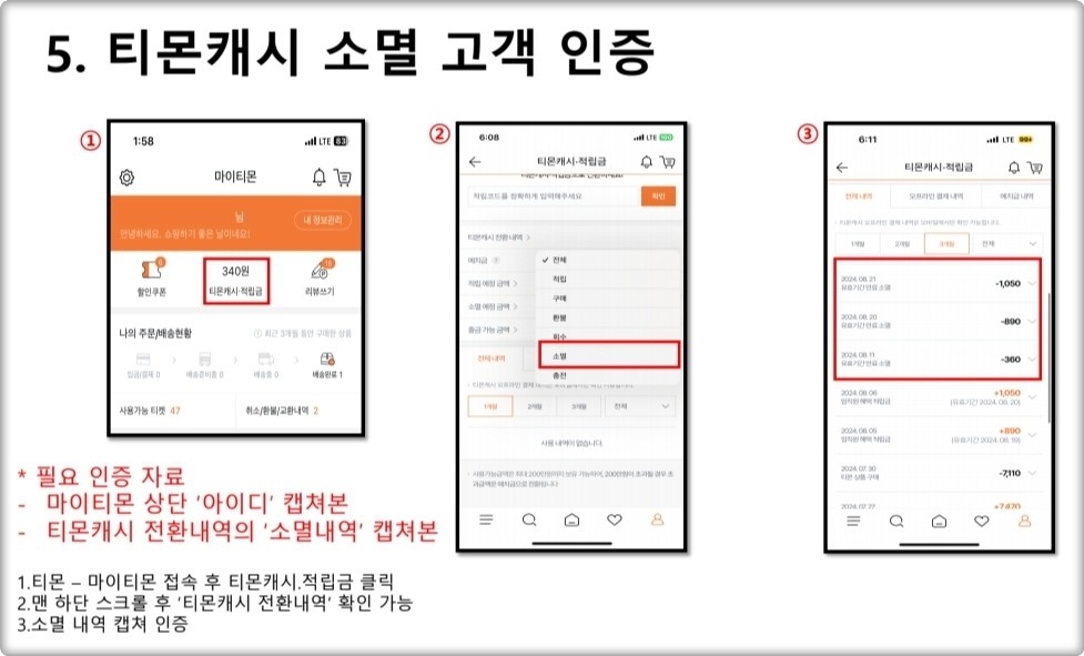 🔻 아래는 티몬캐시 추가 입증자료 제출이 필요한 경우입니다.