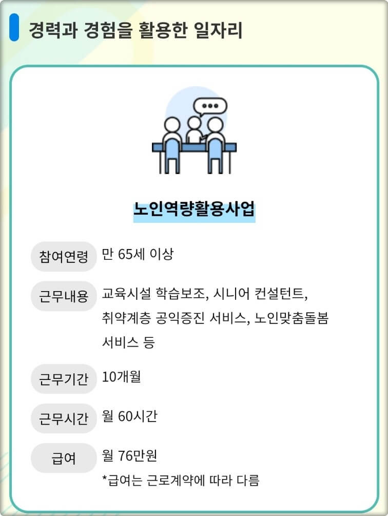 - 경력과 경험을 활용한 일자리: 노인역량활용사업