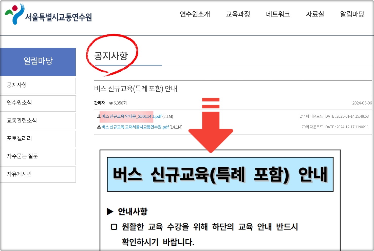 서울시 교통연수원의 '2025년도 1분기 신규교육 일정'은 이미 공지사항에 올라와 있는데요.