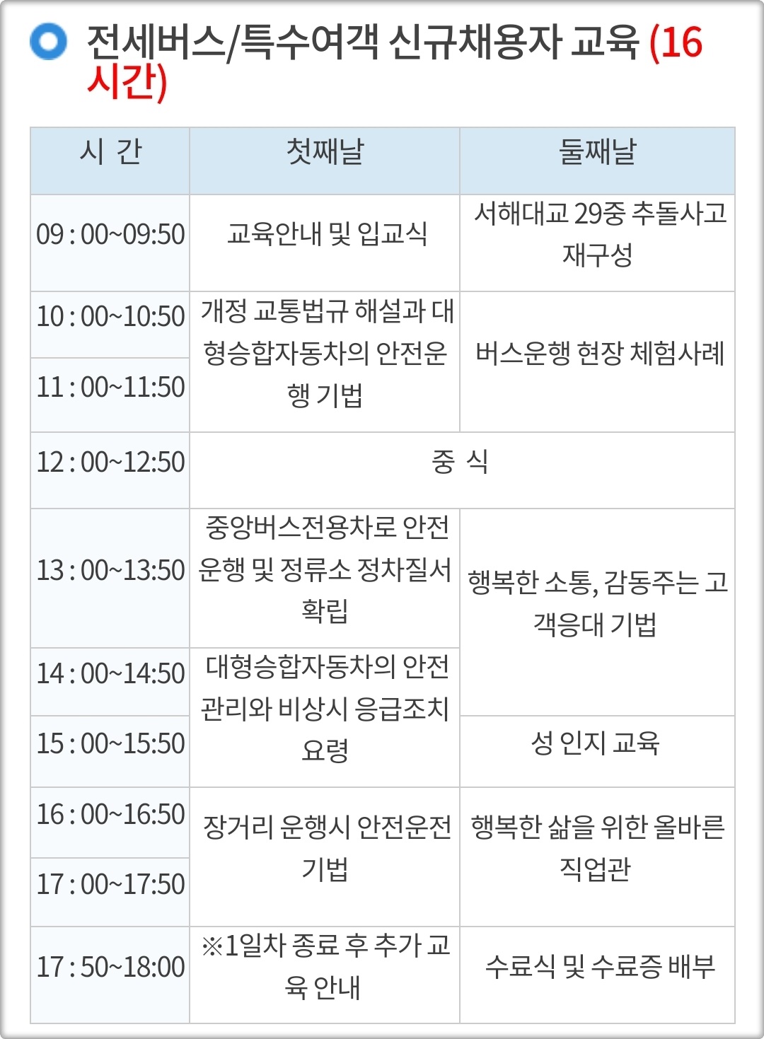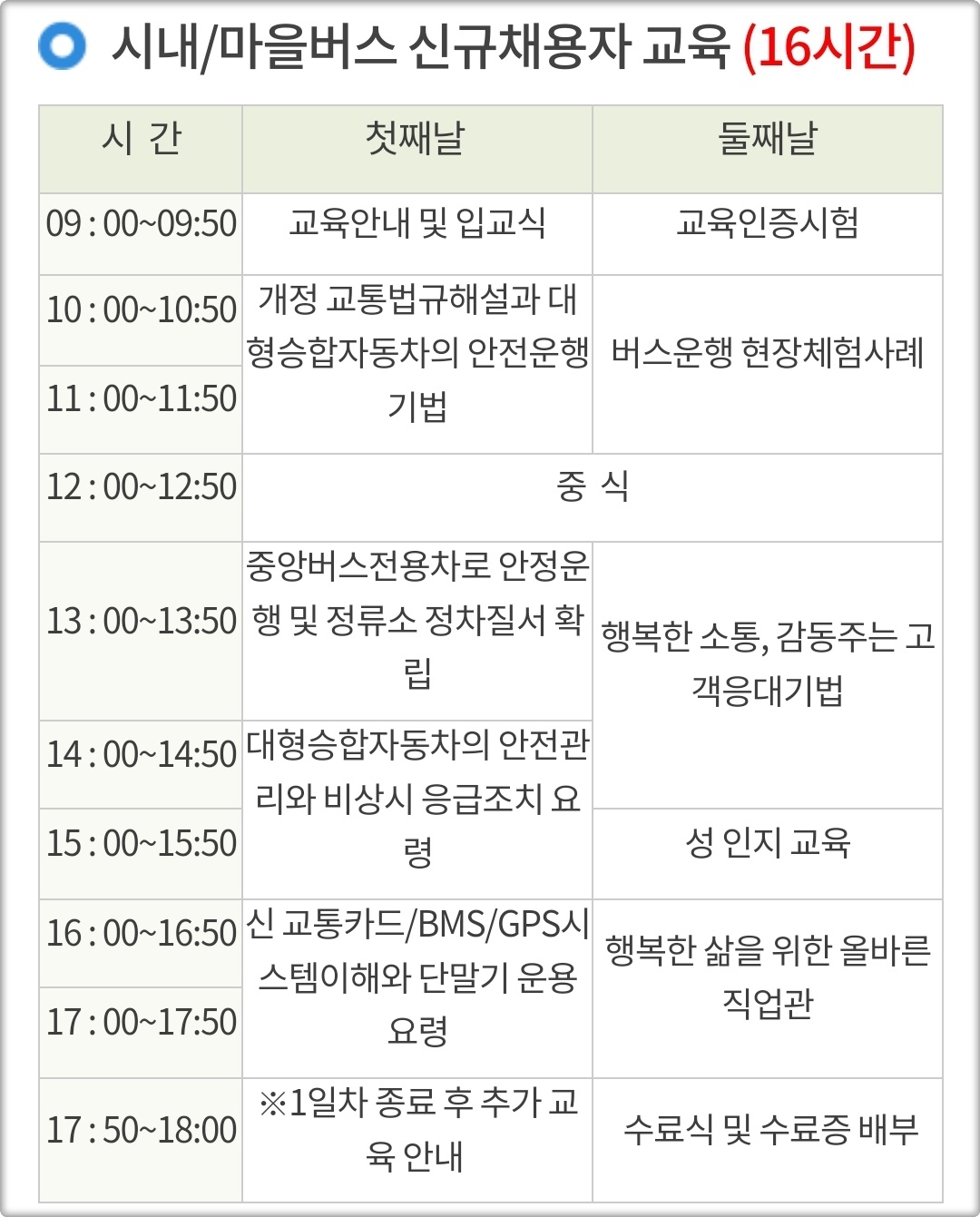 버스기사로 새로 취업하셨거나 취업이 확정된 분들은 '버스 신규채용자 교육'을 꼭 받아야 한다는 점 아시지요?