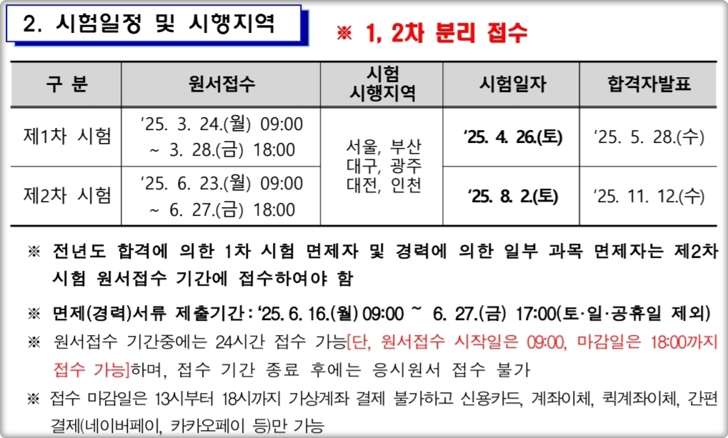 또한 1차 시험 합격자분들이 놓치지 말아야 할 부분이 바로 2차 시험 접수 일정인데요.