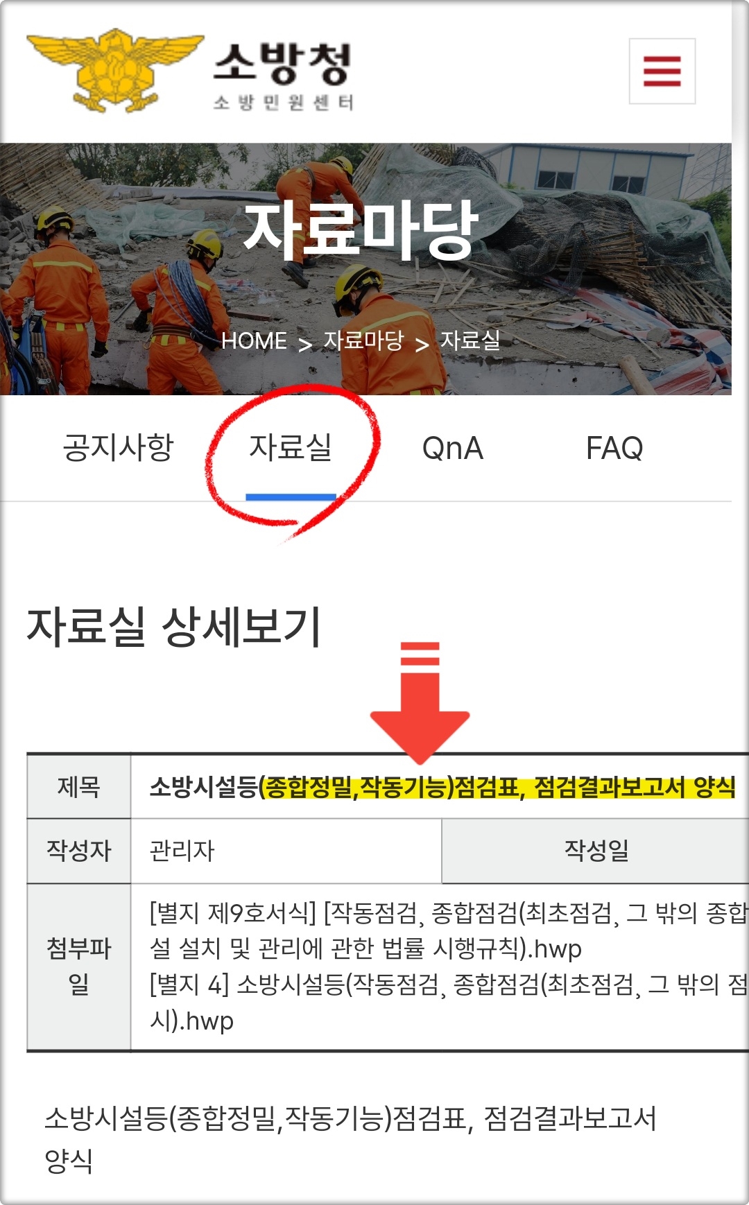 작동기능점검 관련 양식은 '소방민원센터 홈페이지의 자료실' 출처의 공식양식으로 사용하시기 바랍니다.