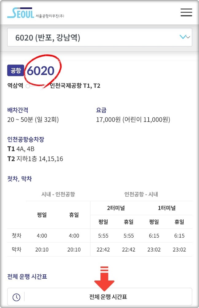 (인천공항 6020번 리무진 "최신시간표" 확인)