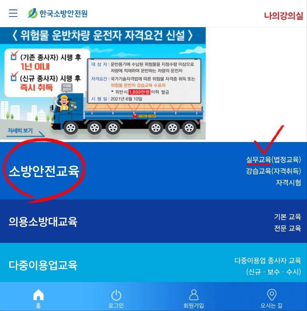 1. 위험물운송자 실무교육 신청