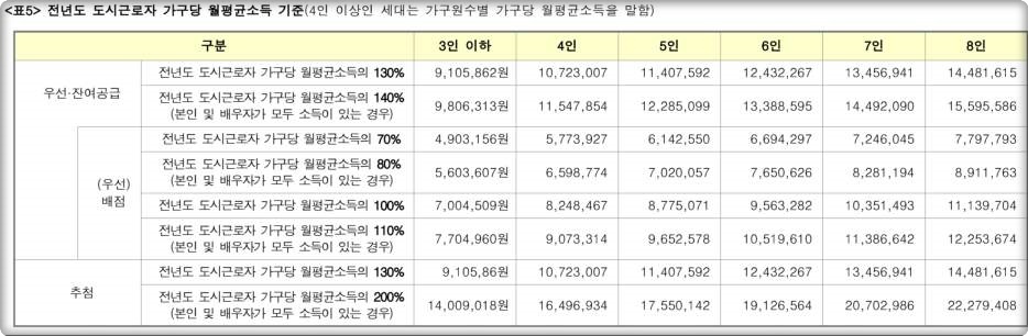 - 도시근로자 가구당 월평균 소득: 130% 이하