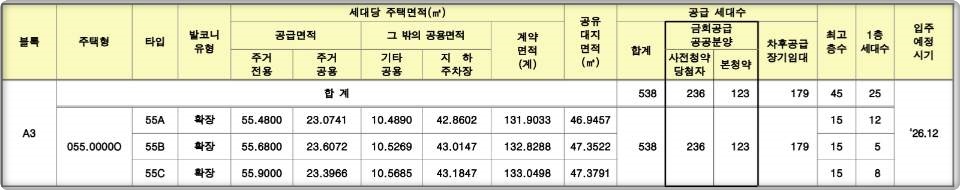 👉 계양 A3 블록 신혼희망타운은 단일 평형(55㎡)으로 평균 분양가가 3.9억 원이며, A2 블록의 분양가는 9월 30일에 공개될 예정입니다.