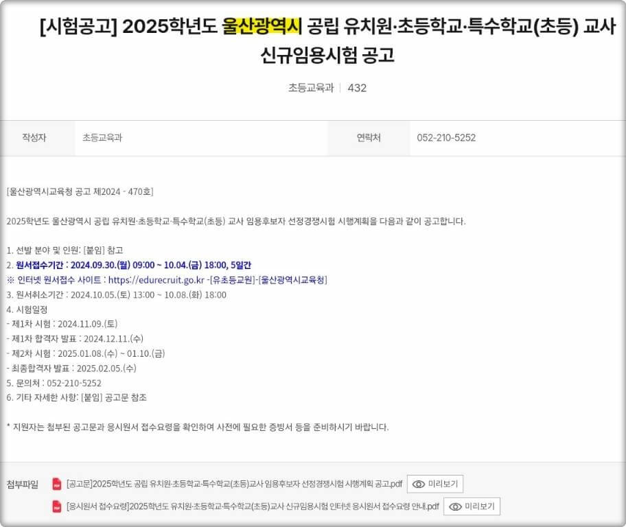 > 2025 울산광역시 교육청 초등교원 임용공고 바로가기