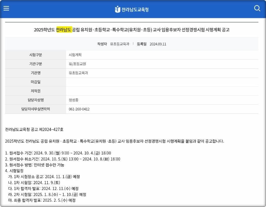 > 2025 전라남도 교육청 초등교원 임용공고 바로가기