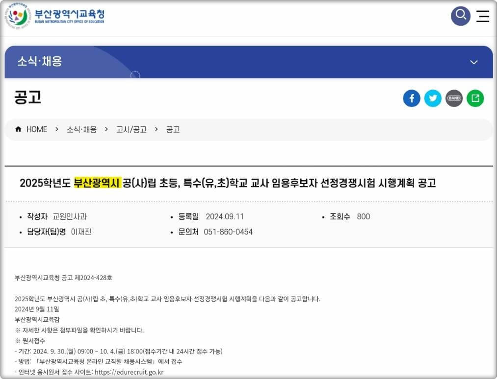 > 2025 부산광역시 교육청 초등교원 임용공고 바로가기