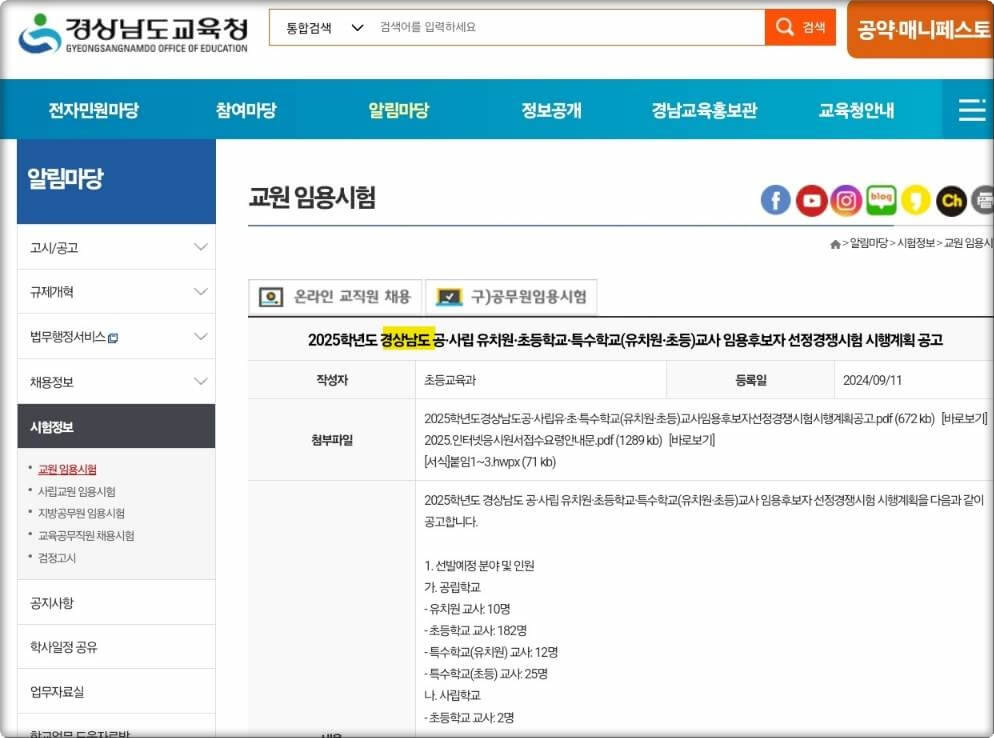 > 2025 경상남도 교육청 초등교원 임용공고 바로가기