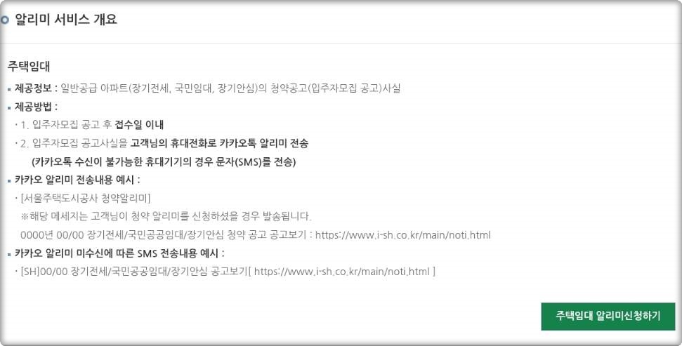 ※ 장기전세 아파트의 경우, '주택임대 알리미신청하기' 를 선택하시면 관련 알림을 받을 수 있습니다.