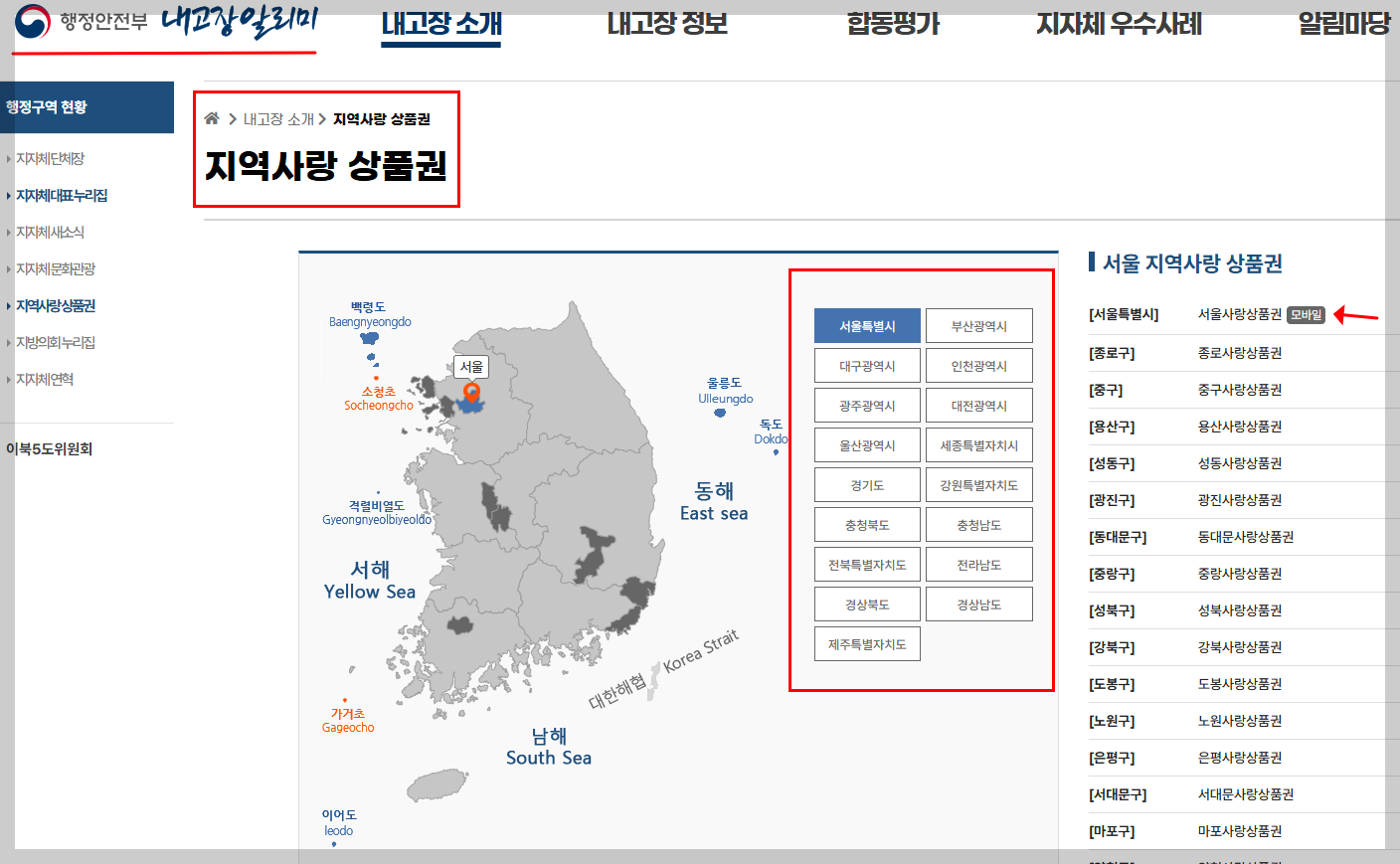 👉 [행정안전부 > 내고장 소개 > 지역사랑상품권 > 지도에서 지역 클릭 > 오른쪽 앱명 확인]