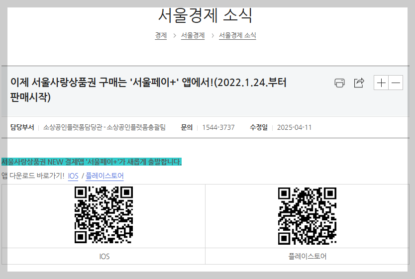 → 서울페이+ 앱 사용 안내와 QR코드도 따로 제공됨 - 부산광역시 선택 → ‘동백전’이라는 이름 확인 가능 → 카드형