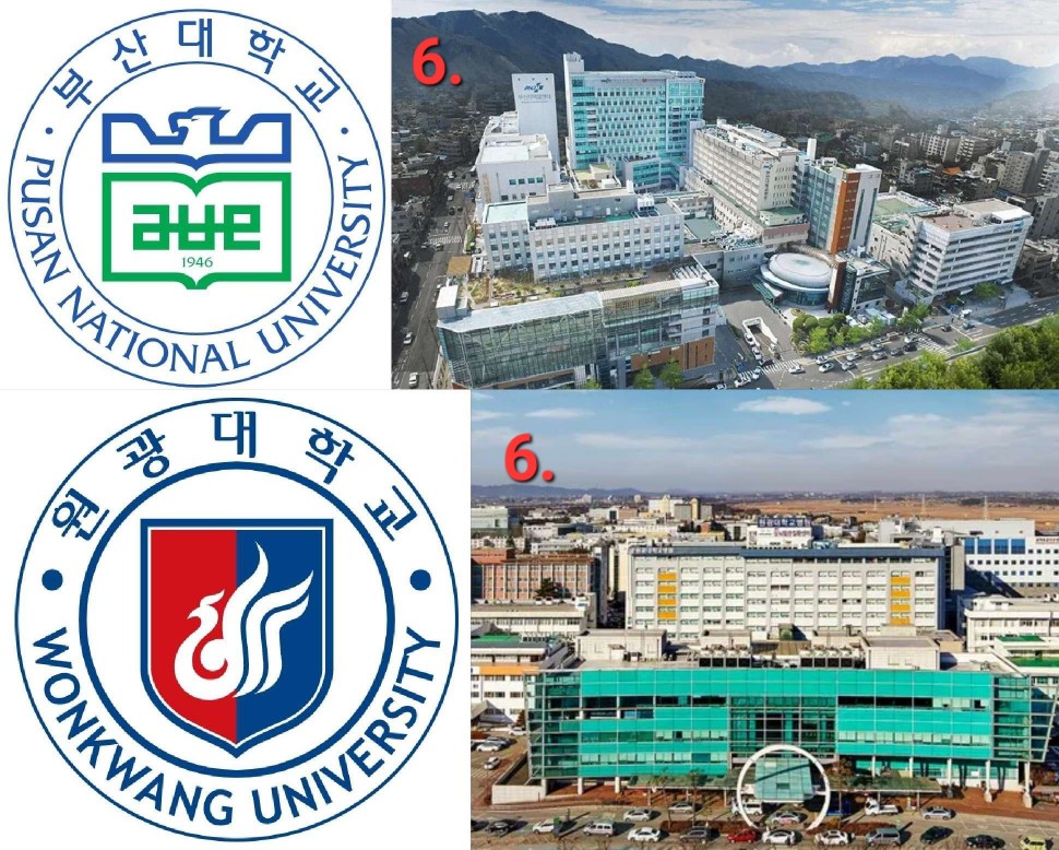 🔻 6위는 부산대 치대와 원광대 치대입니다. 최종등록자 70% Cut 평균(백분위) 97.5점입니다. 부산대는 2023년도에 가군으로 10명을 선발했으며 원광대는 나군으로 총 28명(자연)을 선발했습니다. 부산대는 부산광역시 금정구에 있으며 원광대는 전북특별자치도 익산시에 위치해있습니다.