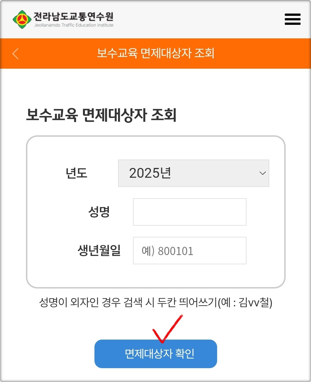 혹시 내가 보수 교육 대상자인지 확실하지 않다면 전라남도 교통연수원 공식 홈페이지에서 보수교육 면제대상 여부를 조회할 수 있습니다.