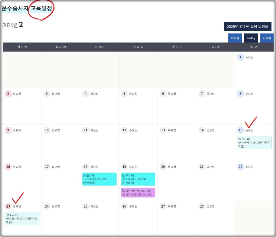 참고로, 2025년도에 가장 빠른 전북 '화물보수교육' 일정은 2월 15일 토요일과 2월 23일 일요일로 잡혀있어요.