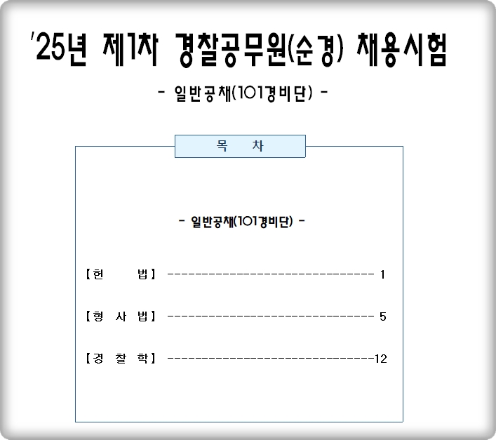 지금까지 2025년도 제1차 경찰공무원 필기시험 문제지와 가답안, 역대 경쟁률 및 합격 커트라인 점수를 정리했습니다.