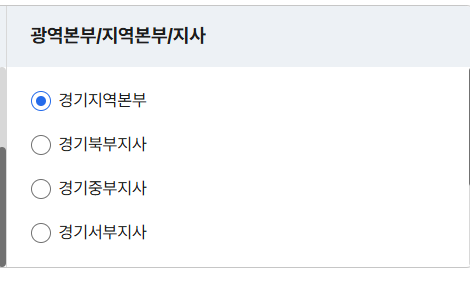 경기지역은 지리적 범위가 넓기 때문에 본부 외에도 각 권역별 지사가 나누어져 있습니다.