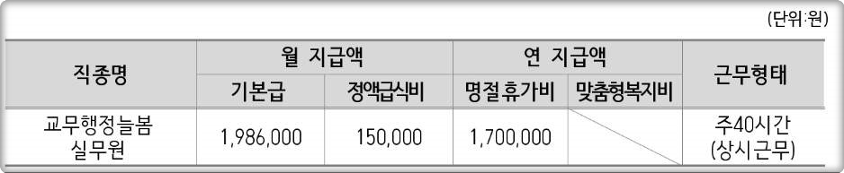 보수와 처우는 매년 교육공무직원의 임금과 복무기준을 따르는데요.