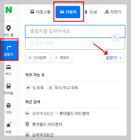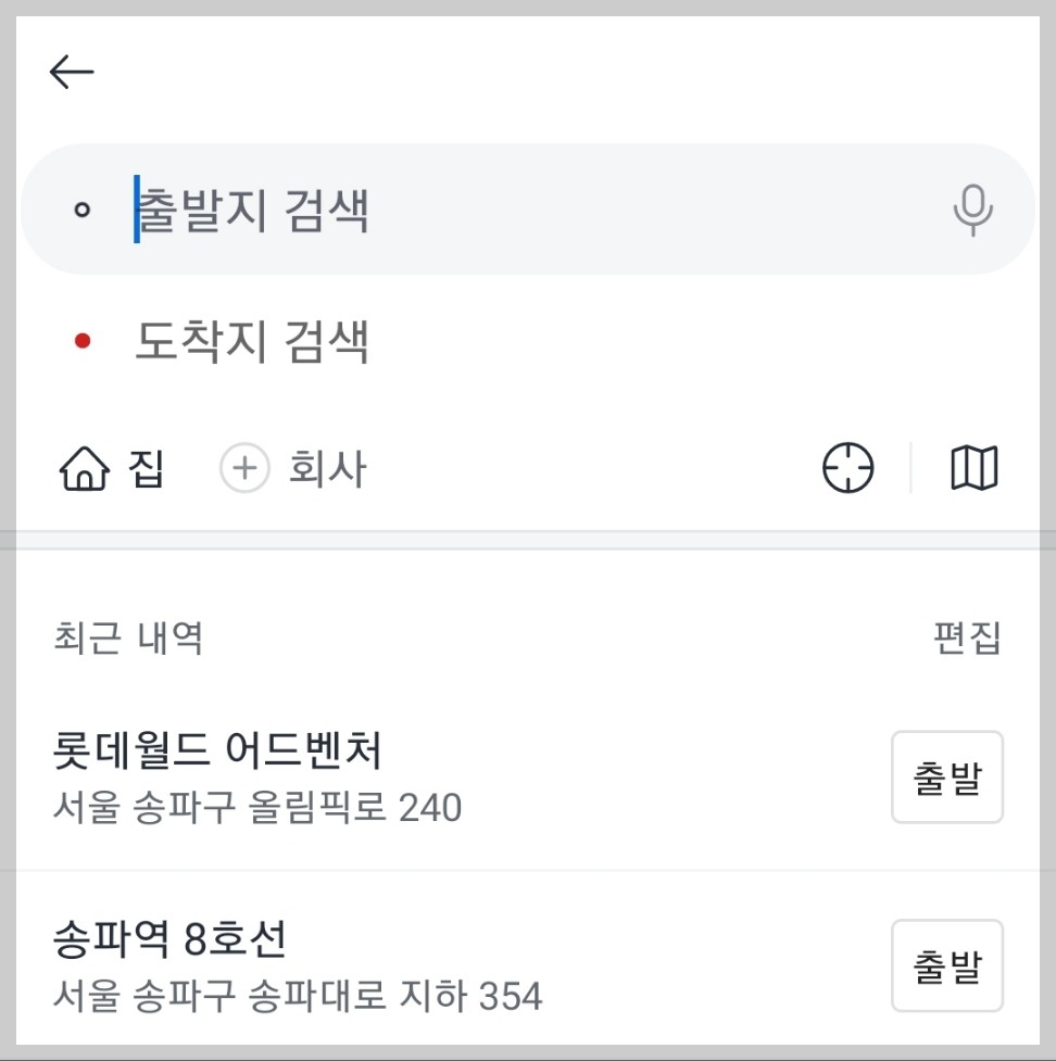 *최근 검색한 경로가 있다면 하단에서 바로 선택도 가능합니다.