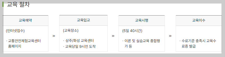 신청 시에는 운전면허증, 택시운전자격증, 교육수수료가 필요하고, 교육 당일에는 오전 9시 이전까지 교육장(화성 또는 상주)에 도착하셔야해요.
