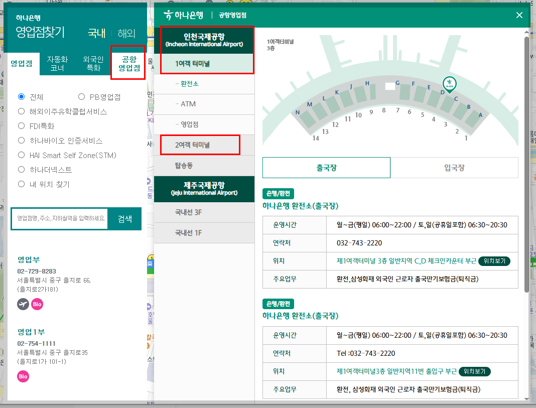 다만, 인천공항 하나은행 환전소는 터미널마다 위치가 달라 헷갈릴 수 있어요.