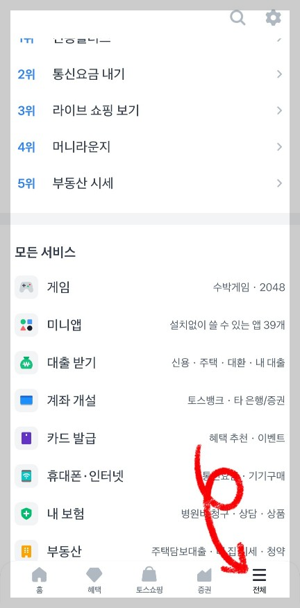 - 앱 하단의 [전체] 탭을 선택합니다.