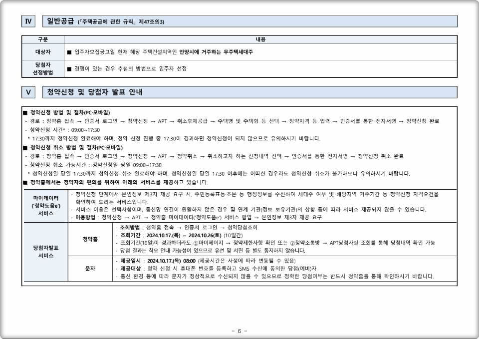- 중복청약은 불가능하며, 특별공급 당첨자는 일반공급 선정에서 제외됩니다.