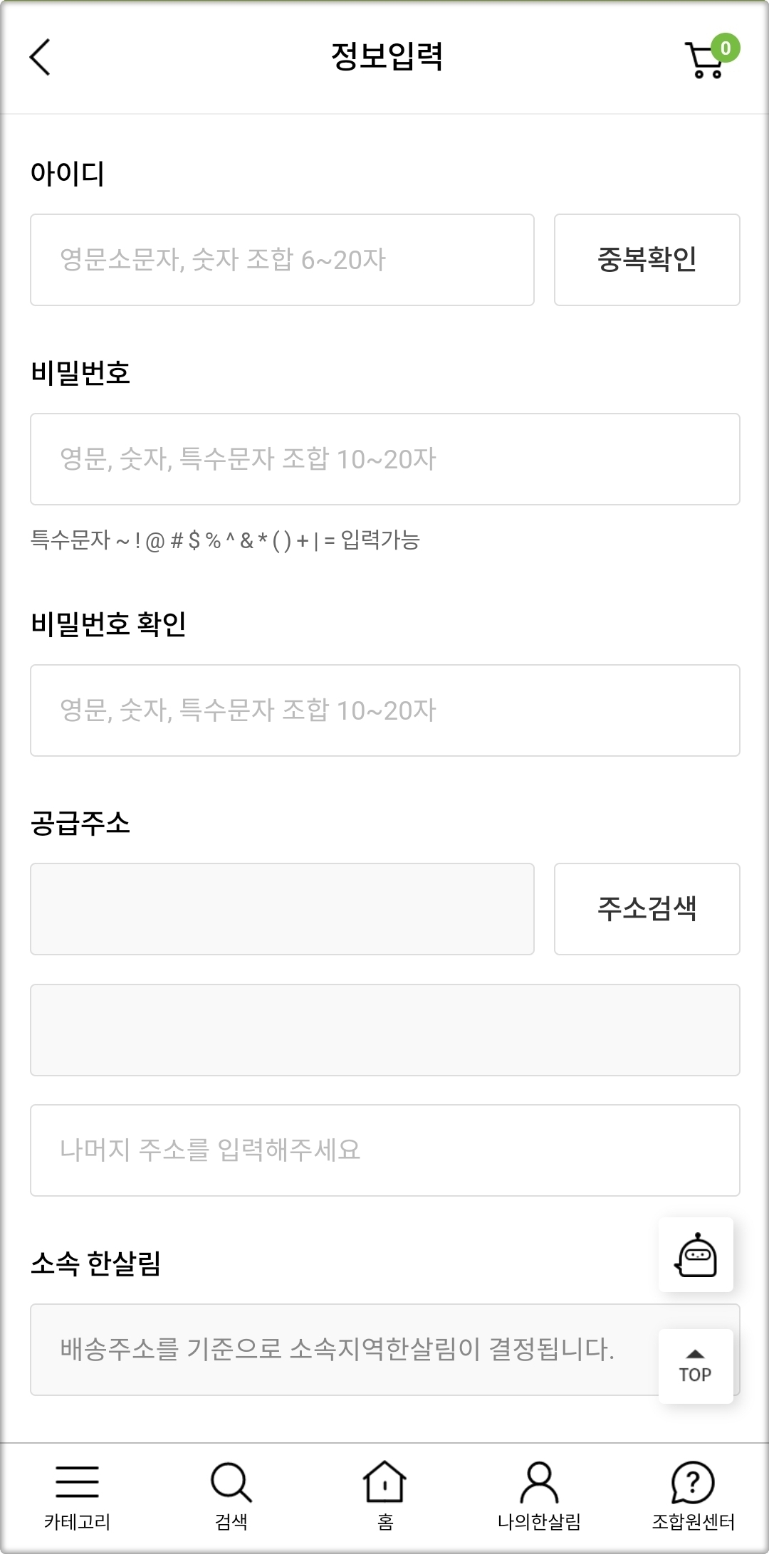 → 이름, 주소, 아이디/비밀번호 등 입력